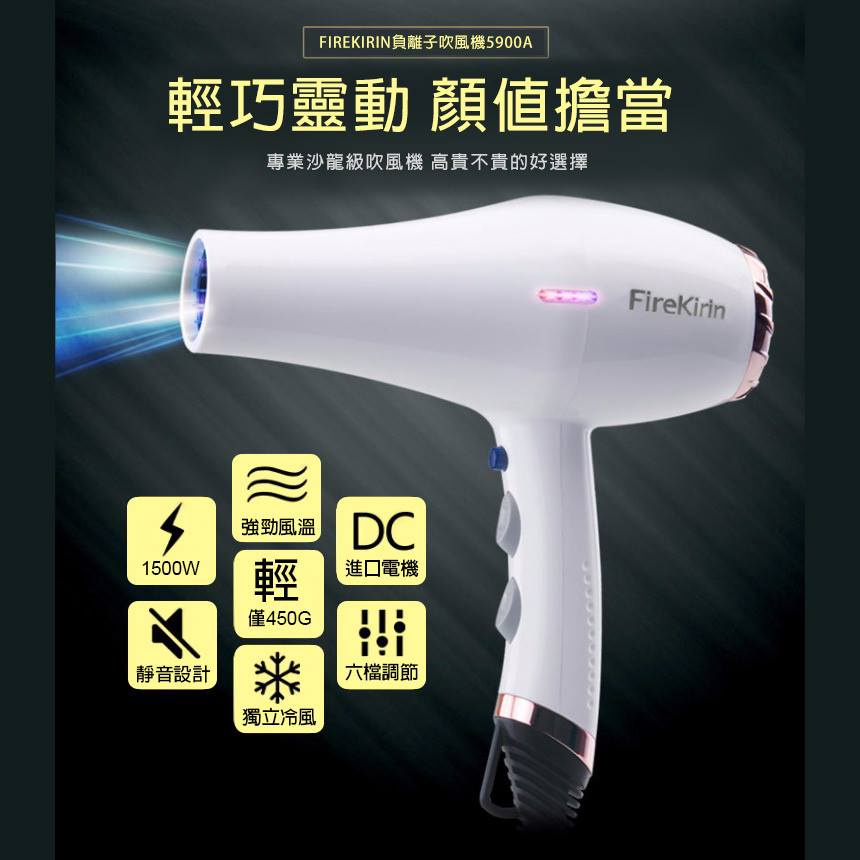 Firekirin 6000A 輕巧(負離子)吹風機 1500W 高熱能負離子 玫瑰金 大風量 設計師專用款~有保固~