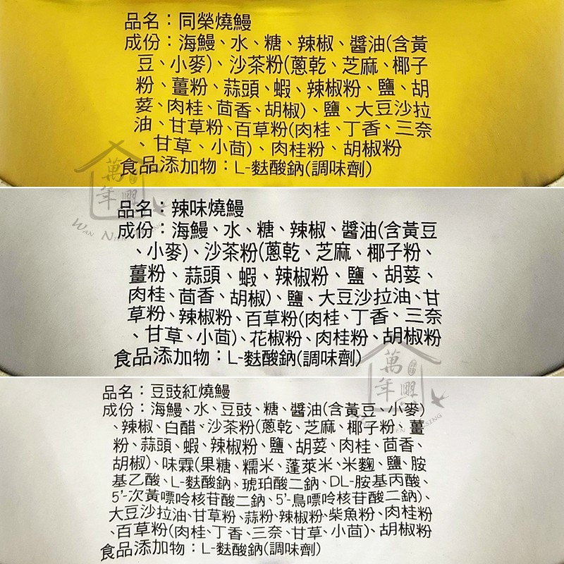 同榮 特選燒鰻(原味) 辣味燒鰻 豆鼓 紅燒鰻 紅麴鰻 黑胡椒鰻 100g 鰻魚 罐頭 易開罐 【萬年興】