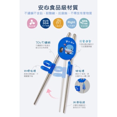 【馨BABY】KUKU 酷咕鴨 不鏽鋼學習筷 右手適用 KU3039 可選色
