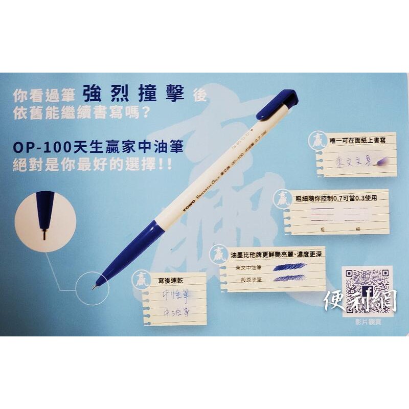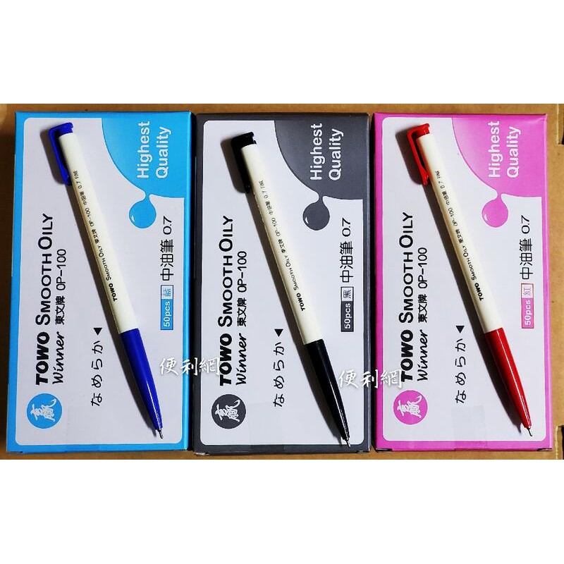 TOWO東文 天生贏家0.7中油筆 OP-100 可在面紙上書寫 寫後速亁 0.7可當0.3使用 50支/盒【便利網】