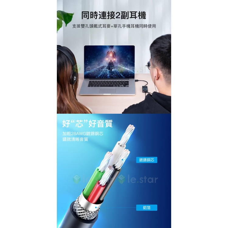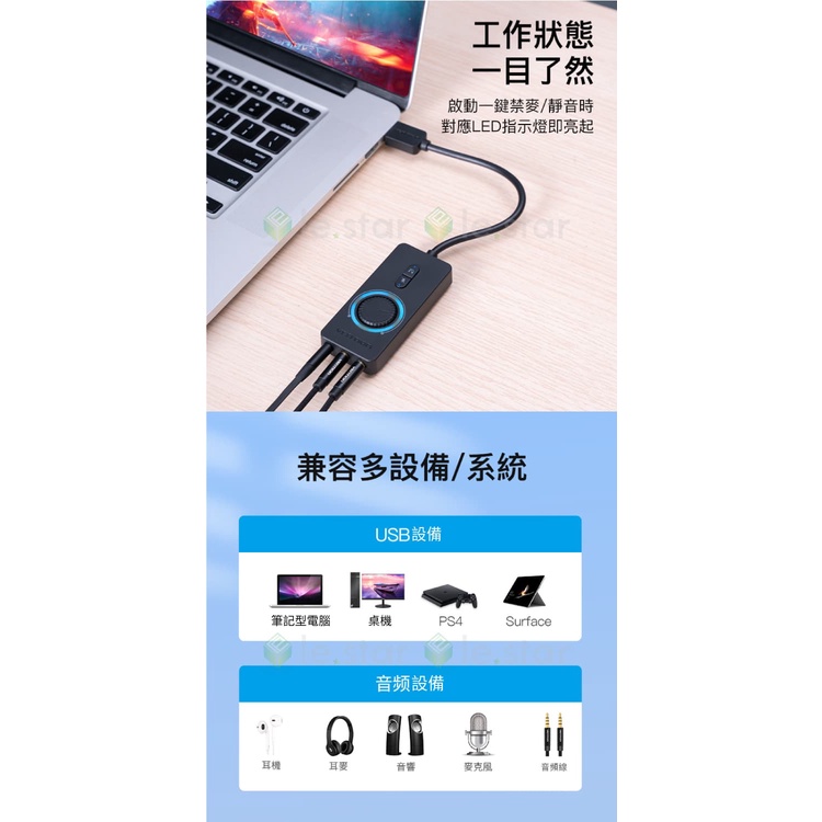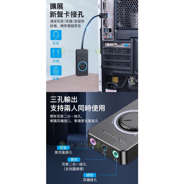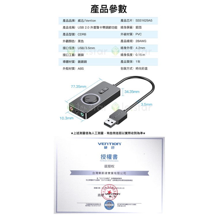 【VENTION】威迅CDR系列 USB 外置音效卡-帶音量調節/麥克風功能 0.15M 品牌旗艦店 公司貨