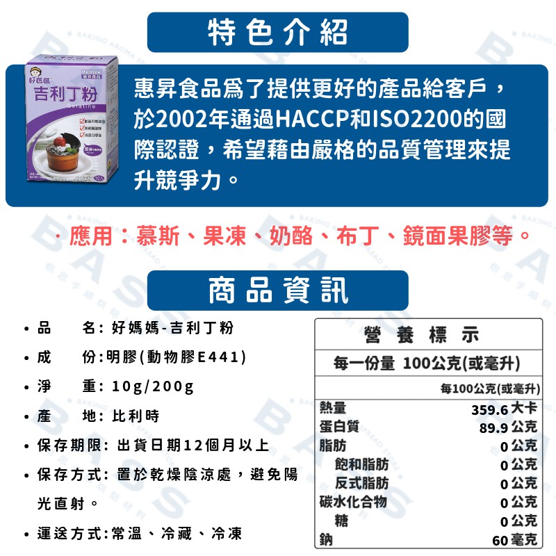 【焙思烘焙材料】 好媽媽 吉利丁粉 200g盒裝 無腥味 口感佳 奶酪 布丁 果凍使用