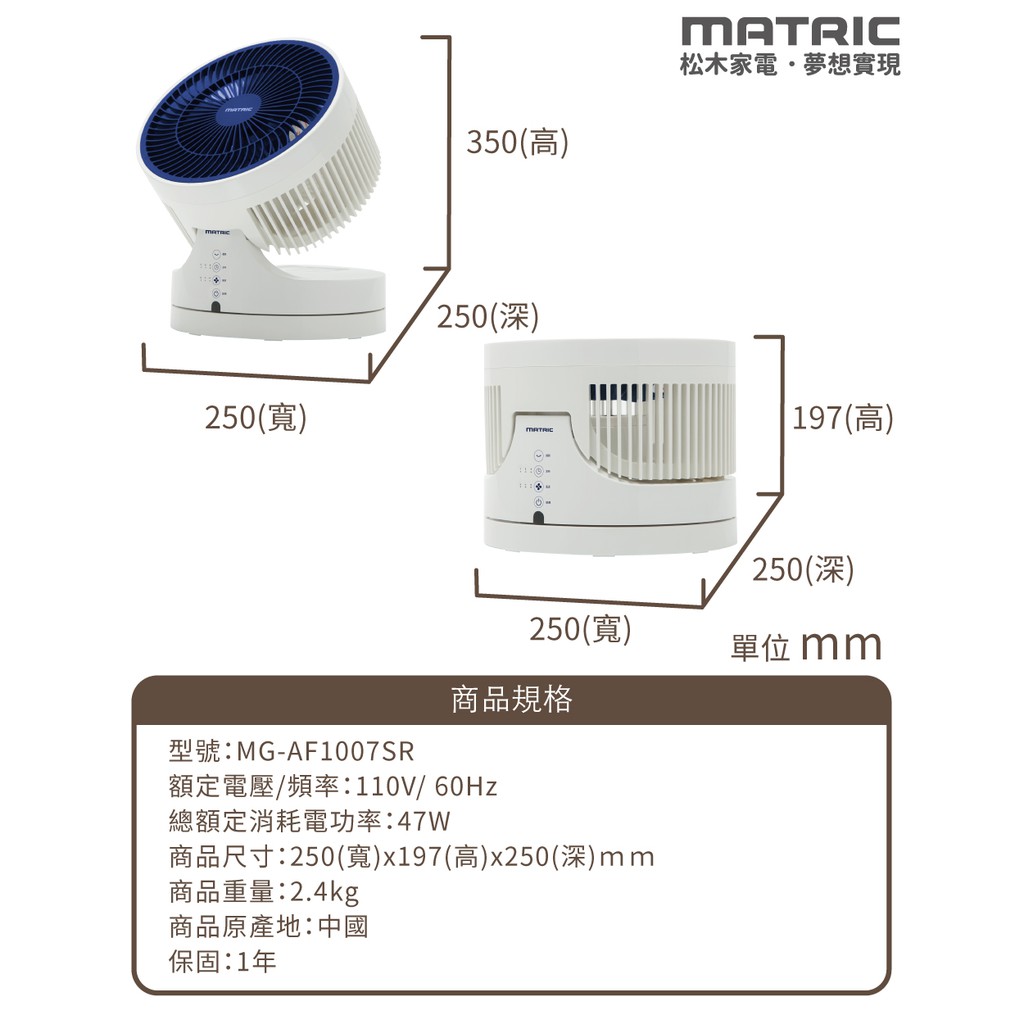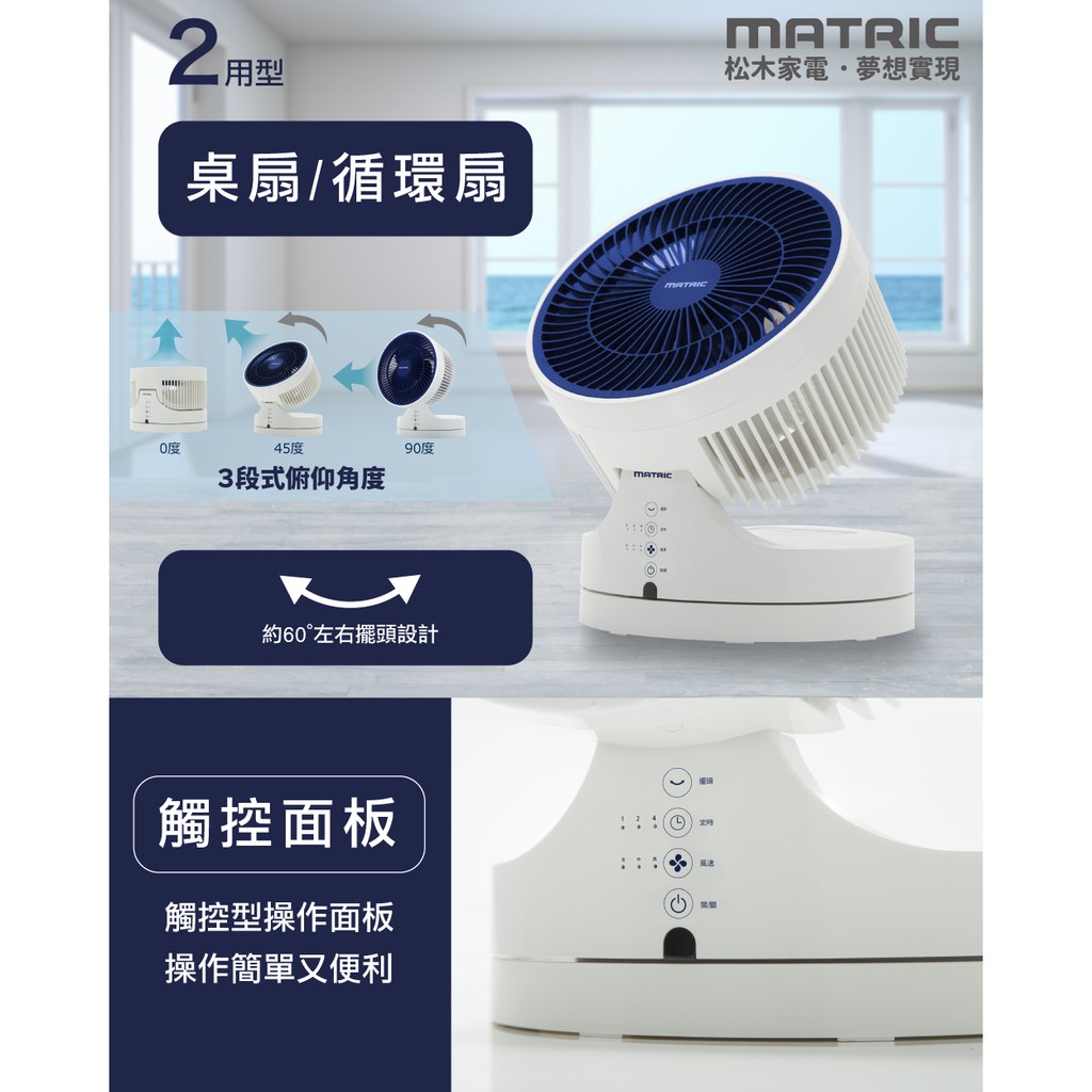 【MATRIC 松木】10吋美形旋風渦輪循環扇(海軍藍) MG-AF1007SR 現貨 廠商直送