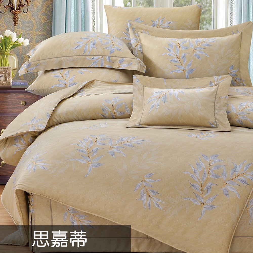 60支100%純天絲銀離子【雙人 加大 特大組合】規格可選 兩用被床包四件組 七件式鋪棉床罩組 思嘉蒂黃
