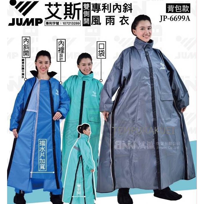 👍免運🆗可刷卡【JUMP 艾斯 ACE 升級版+雙側開背包款 專利內斜拉風雨衣】隱藏雨帽 機車雨衣 6699A