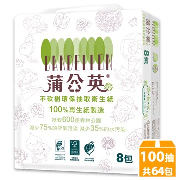 宅配免運【蒲公英】環保抽取式衛生紙-100抽*8包*8串(64包)