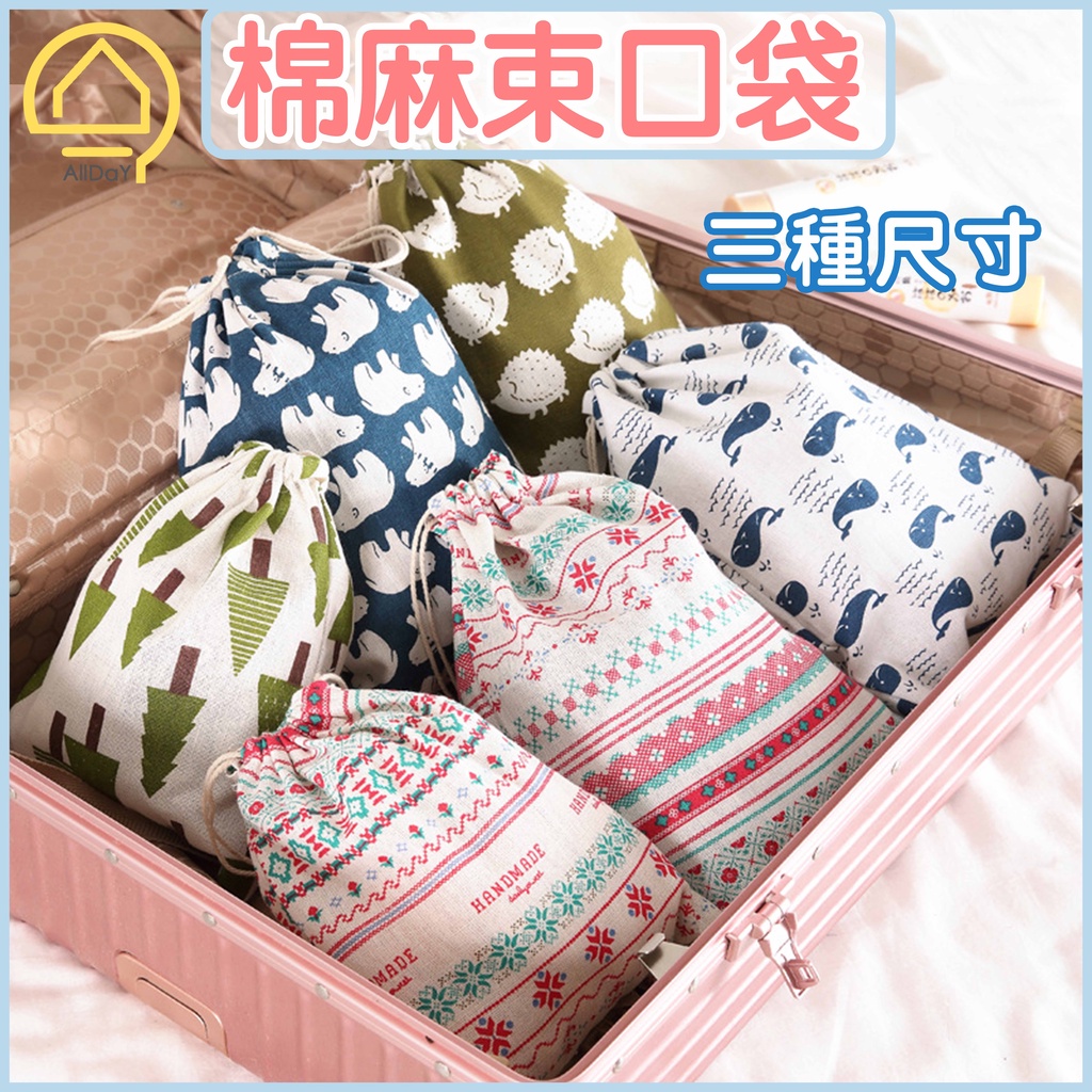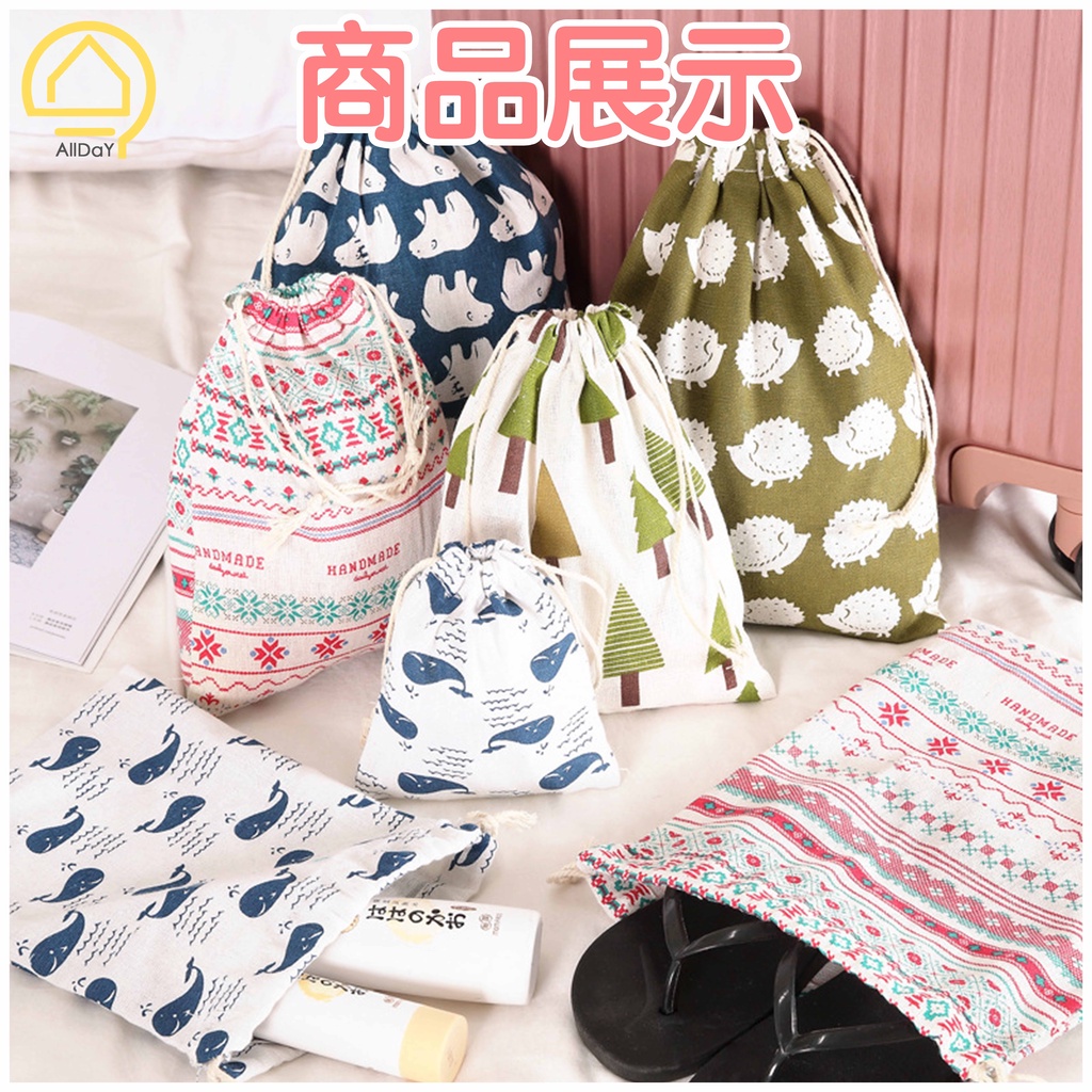 台灣現貨【美日每日】棉麻束口袋 日式束口袋 收納袋 旅行收納袋 禮物袋 聖誕節 抽繩袋 化妝品收納袋 飾品收納 隨身包