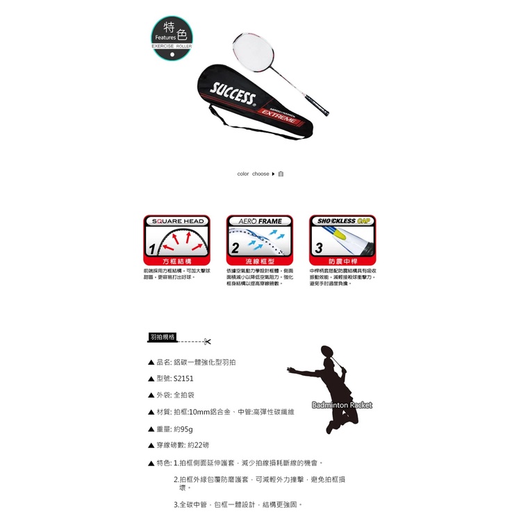 【維玥體育】成功 SUCCESS S2151 鋁碳一體強化型羽拍 (附全拍袋) <僅宅配>
