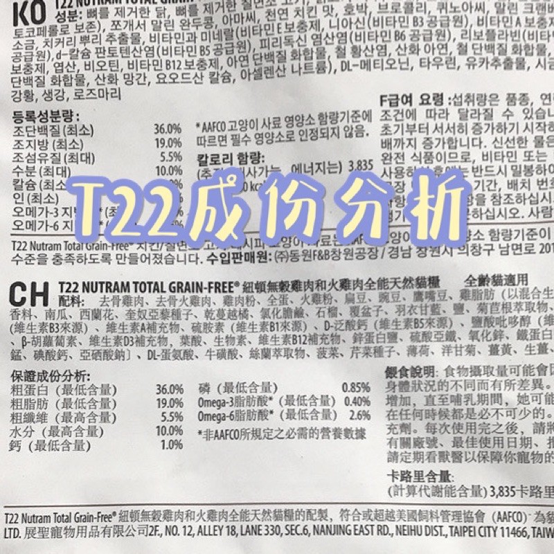 💖寵玥寵物💖免運費!nutram紐頓T22無穀全能全齡貓火雞➕雞肉