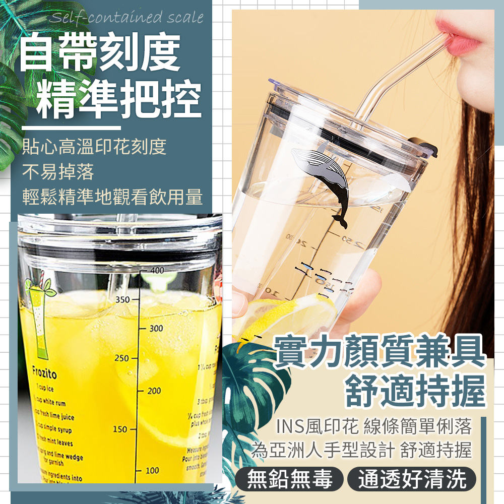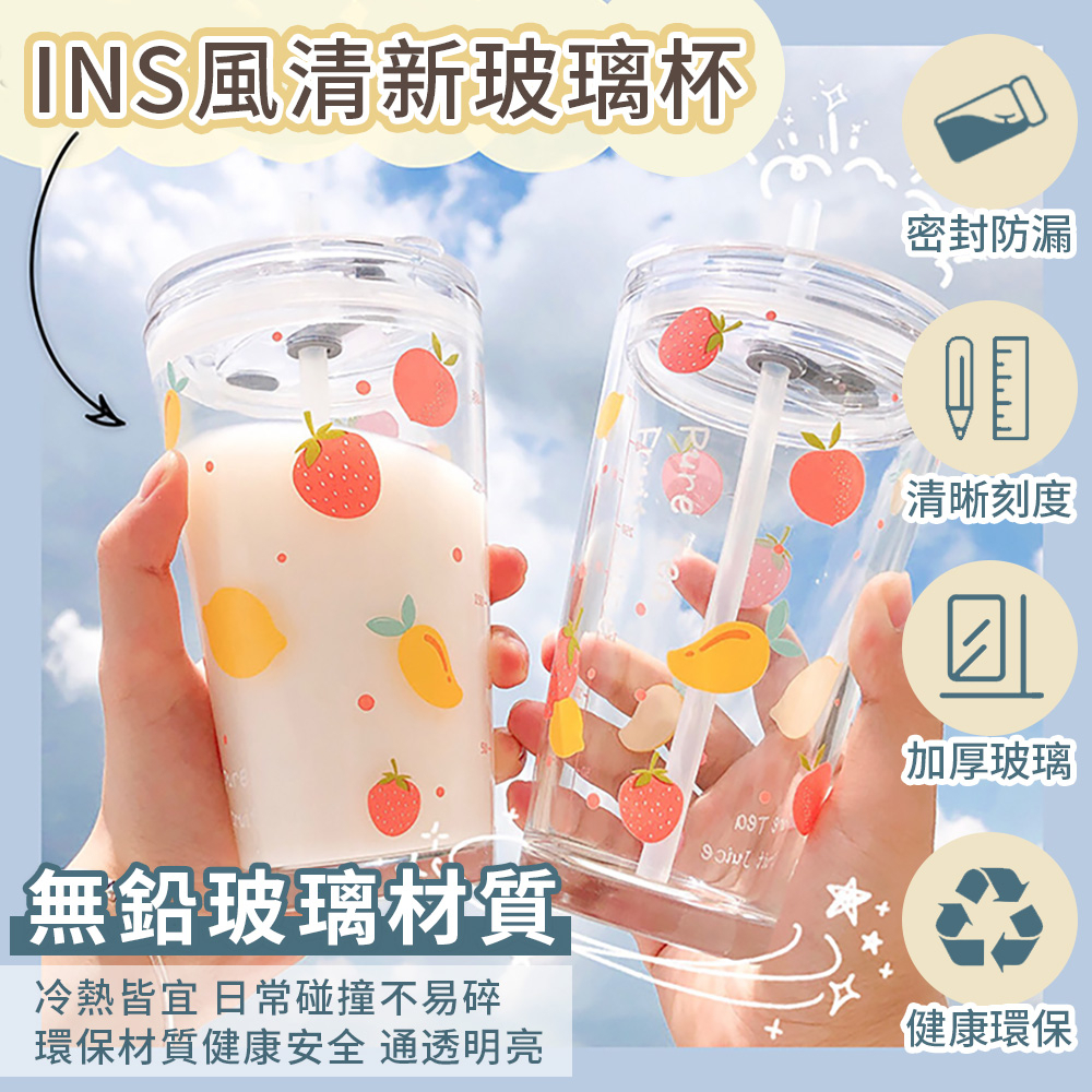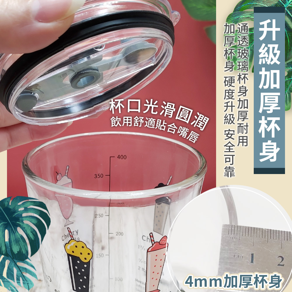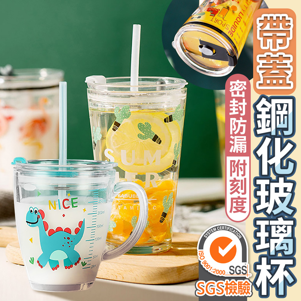 刻度玻璃杯【SGS檢驗合格/鋼化防摔】密封防漏 兒童牛奶杯 吸管杯 強化玻璃 早餐杯 咖啡杯 耐熱 水杯 燕麥杯 果汁杯