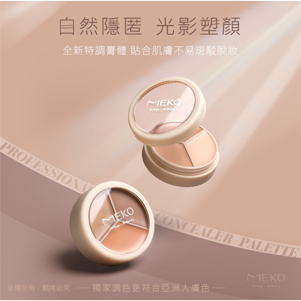 MEKO 精修大師訂製三色遮瑕盤(3款任選)/遮瑕 提亮 黑眼圈 斑點 痘印 淚溝 法令紋 頸紋 三色遮瑕盤