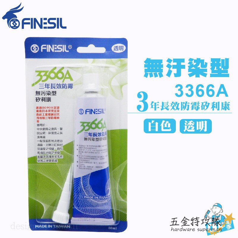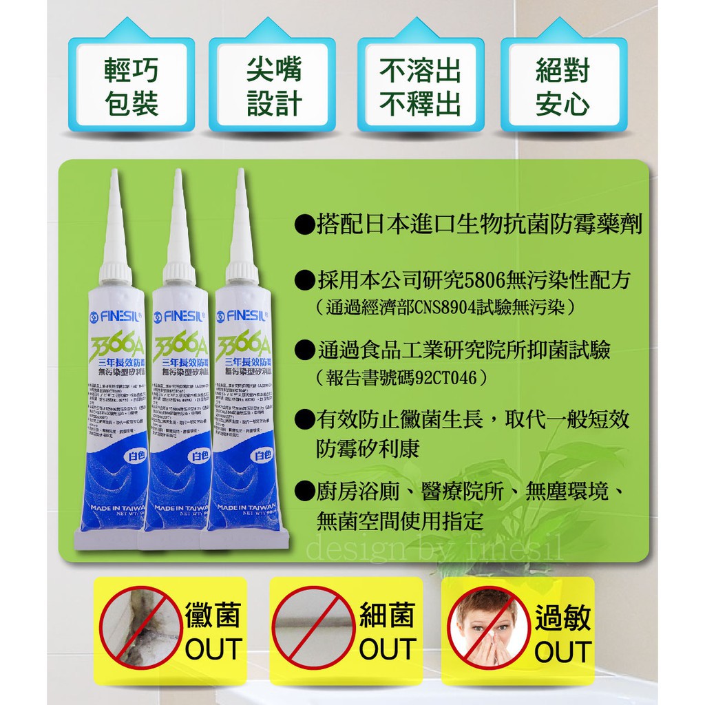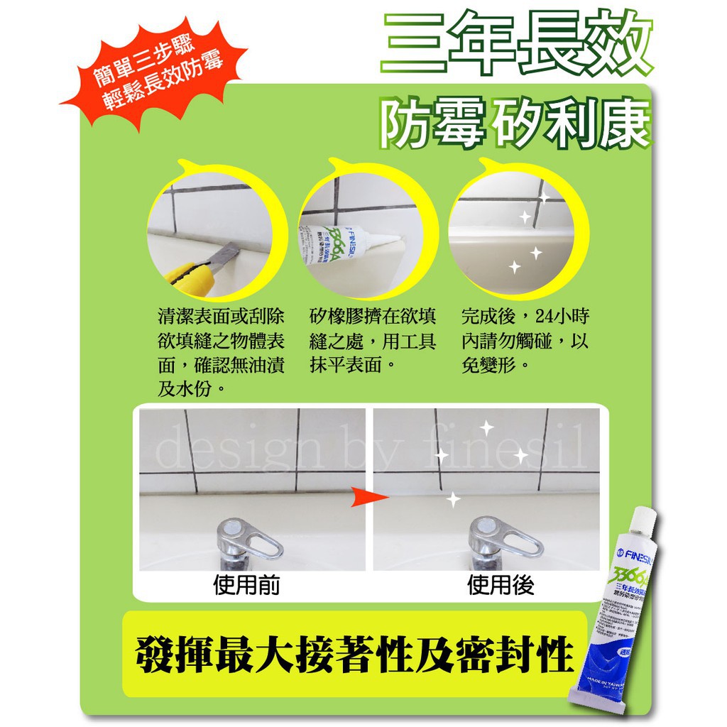 【矽利康】3366A三年長效防霉無污染型矽利康 80ml 白色/透明 防水膠 填縫劑 FINESIL 矽力康