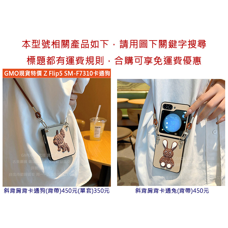 GMO現貨特價Samsung三星 Z Flip5 5代 SM-F7310 斜背肩背 卡通兔 手機套殼保護套殼情侶包殼