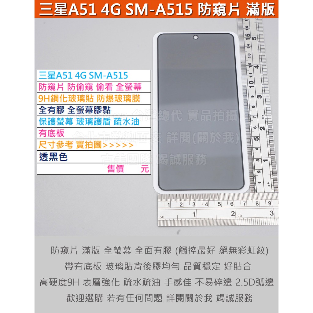 GMO特價出清多件Samsung三星A51 4G 6.5吋防窺片防偷窺偷看全螢幕全膠有底板9H鋼化玻璃膜防爆玻璃貼弧邊