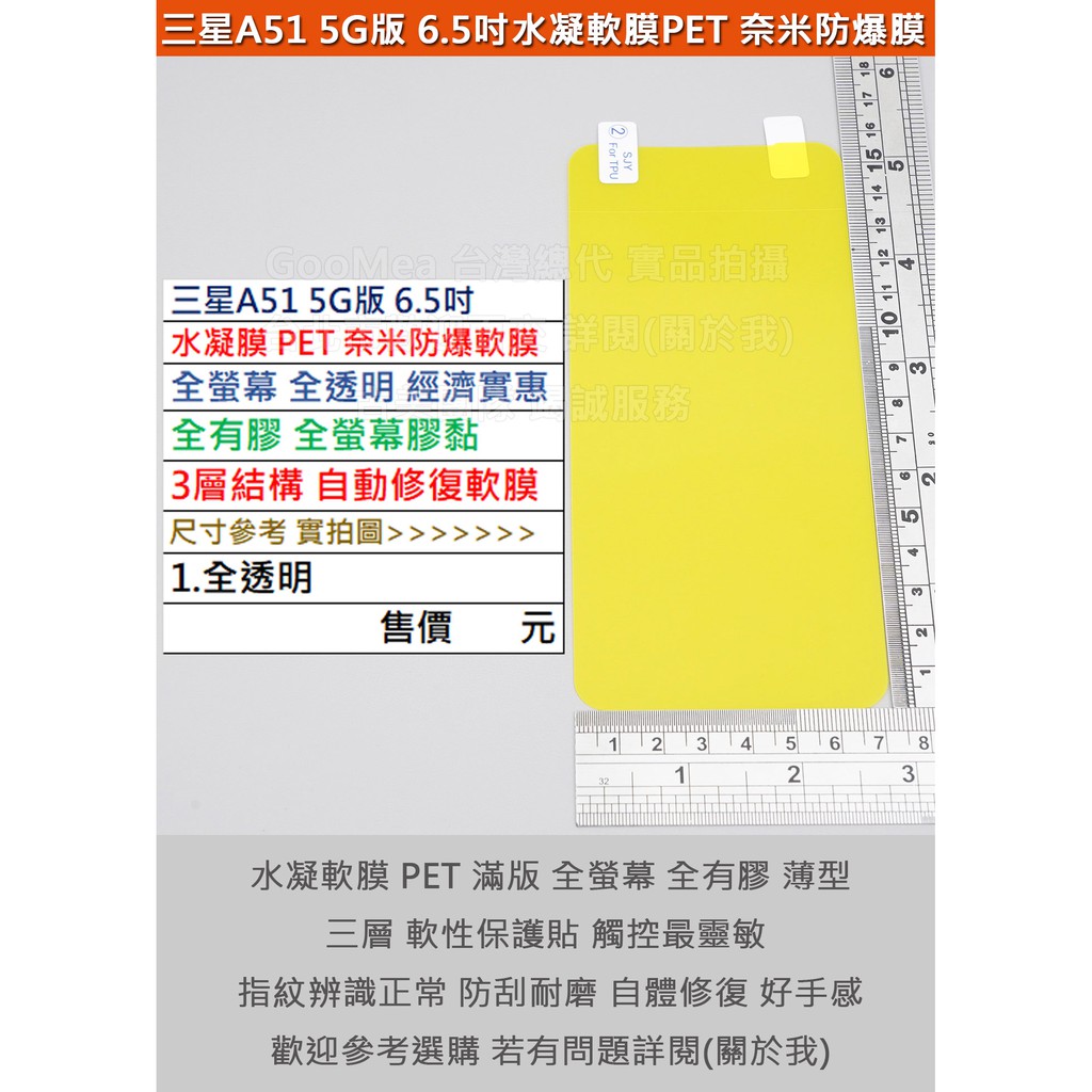 GMO特價出清多件Samsung三星A51 5G版A516水凝膜PET奈米防爆軟膜全螢幕全透全有膠3層結構自動修復軟膜