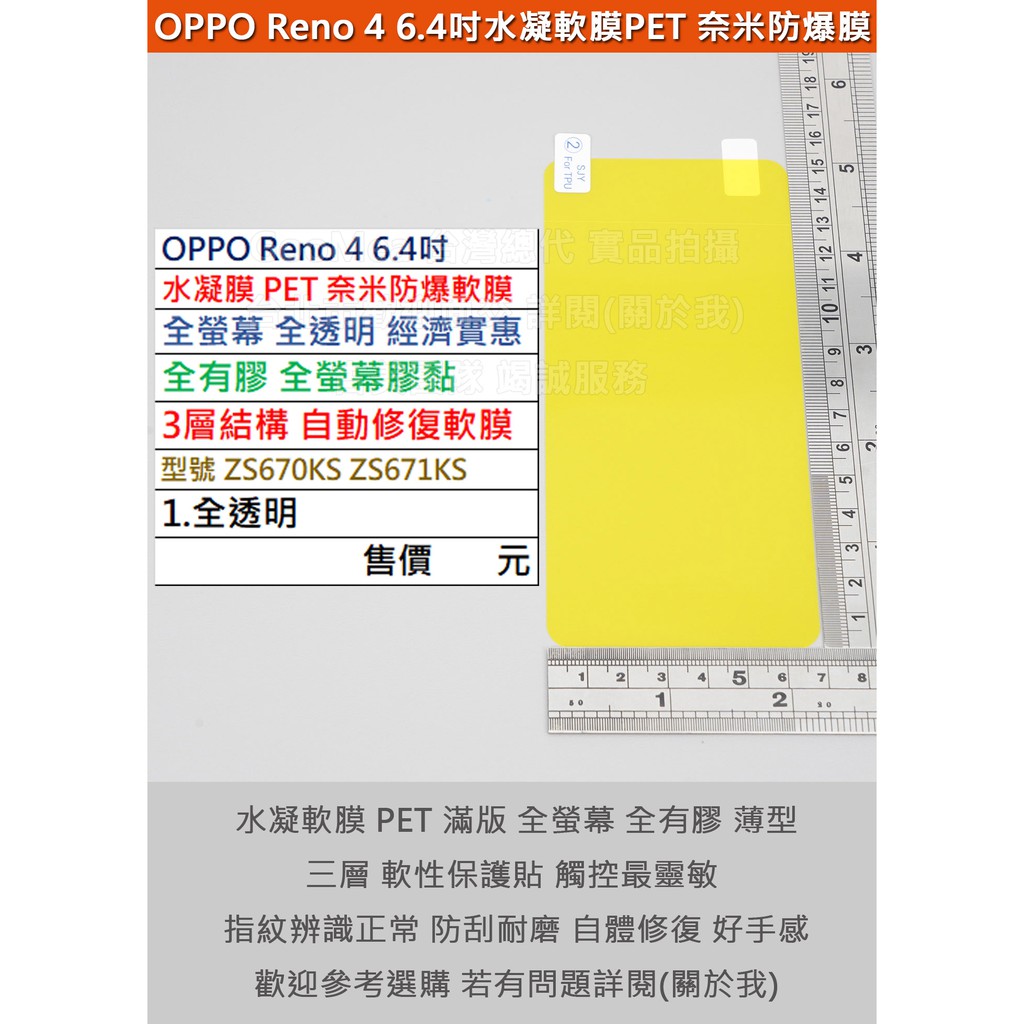 GMO特價出清多件OPPO Reno 4 6.4吋水凝膜PET奈米防爆軟膜阻藍光全螢幕經濟實惠全膠3層結構自動修復