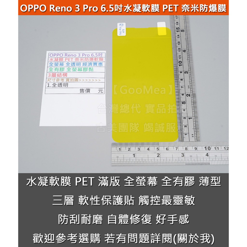 GMO特價出清多件OPPO Reno 3 Pro 6.5吋水凝膜 PET 奈米防爆軟膜 全透明 全有膠 3層結構全螢