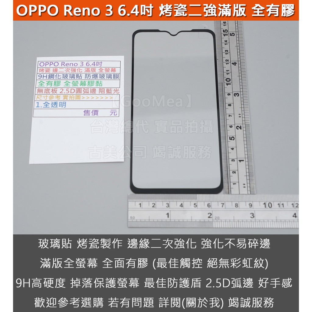 GMO特價出清多件 OPPO Reno 3 6.4吋烤瓷二強 滿版 9H鋼化玻璃貼 防爆玻璃膜 全有膠 無底板 阻藍光