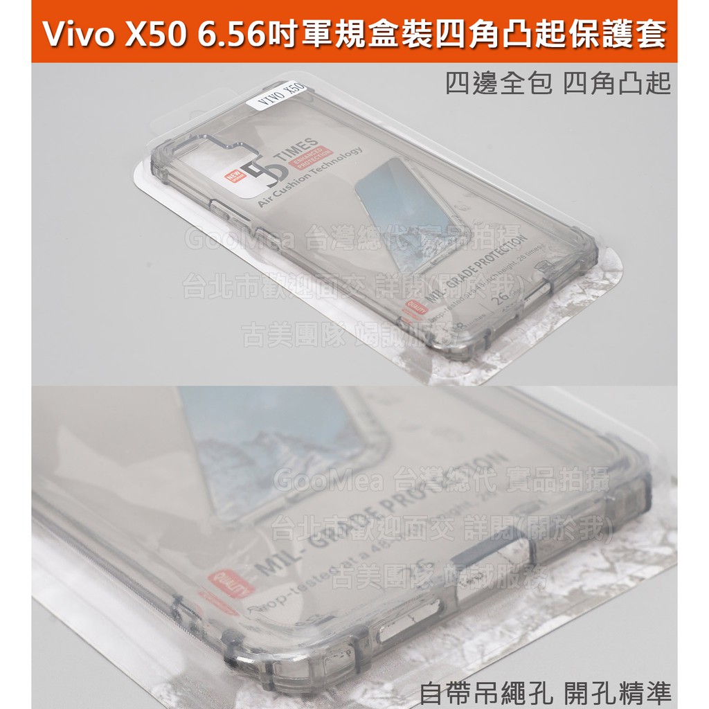 GMO特價出清多件 Vivo X50 6.56吋盒裝軍規四角凸起四邊全包軟套吊繩孔防摔套殼保護殼套手機套殼