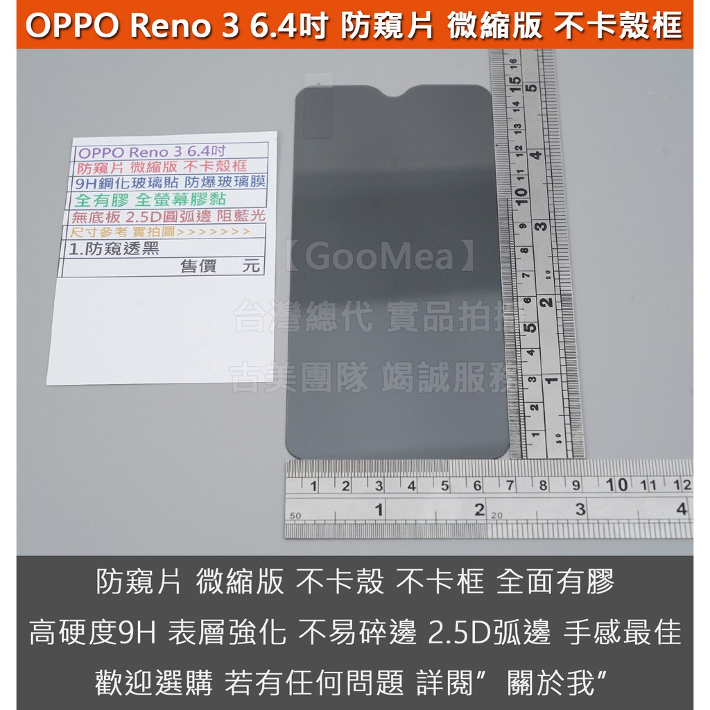 GMO特價出清多件OPPO Reno 3 6.4吋防窺片 微縮版 9H鋼化玻璃貼 防爆玻璃膜全有膠2.5D圓弧邊阻藍