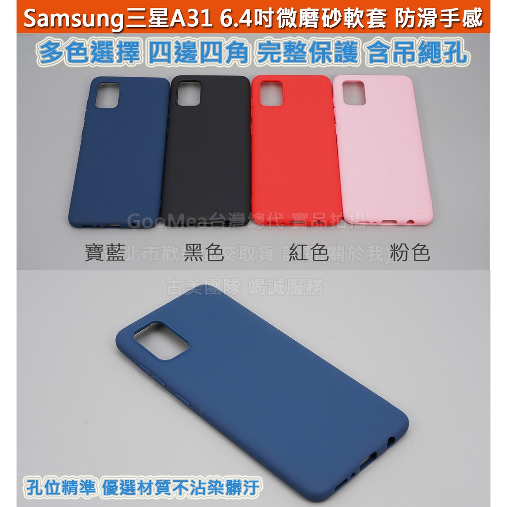 GMO特價出清多件Samsung三星A31 6.4吋 微磨砂軟套防滑無指紋吊飾孔四邊四角全包覆防摔套殼手機殼套保護殼套