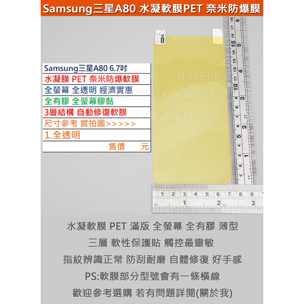 GMO特價出清多件Samsung三星A80 6.7吋水凝膜PET奈米防爆軟膜全螢幕全透明經濟實惠全膠3層結構自動修復