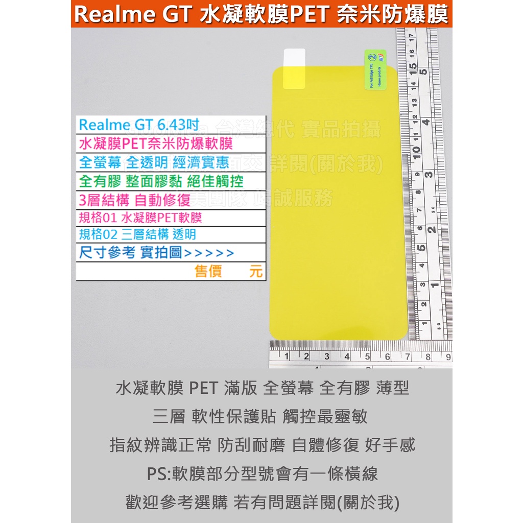 GMO特價出清多件Realme GT 6.43吋水凝膜PET奈米防爆軟膜全螢幕全透明經濟實惠全膠3層結構自動修復軟膜
