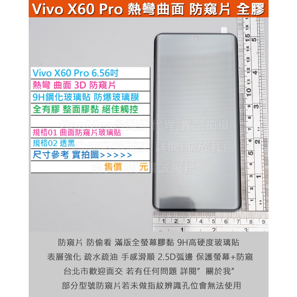 GMO特價出清多件Vivo X60 Pro 6.56吋熱彎曲面3D防窺片無底板防偷窺偷看全膠9H鋼化玻璃膜防爆玻璃貼