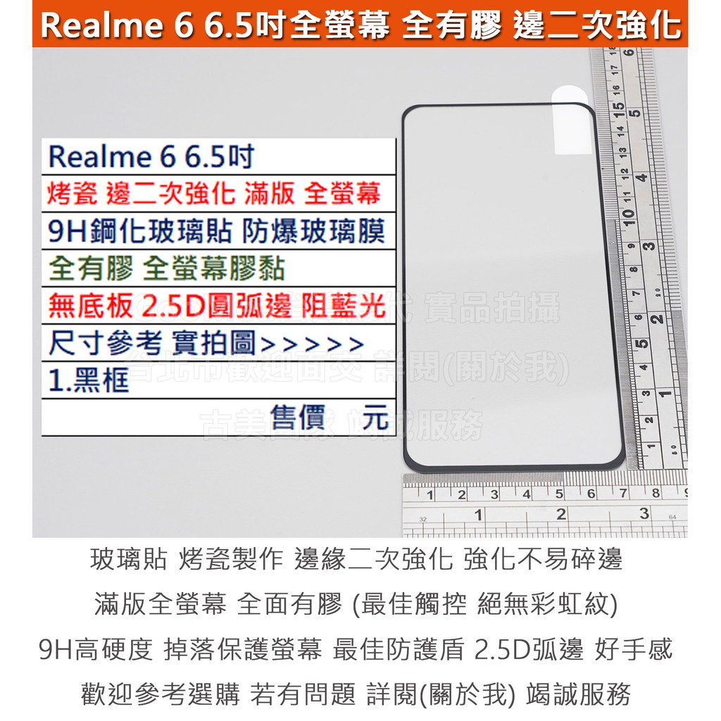 GMO特價出清多件Realme 6 6.5吋烤瓷邊二次強化全膠無底板全螢幕9H鋼化玻璃貼防爆玻璃膜2.5D圓弧邊阻藍光