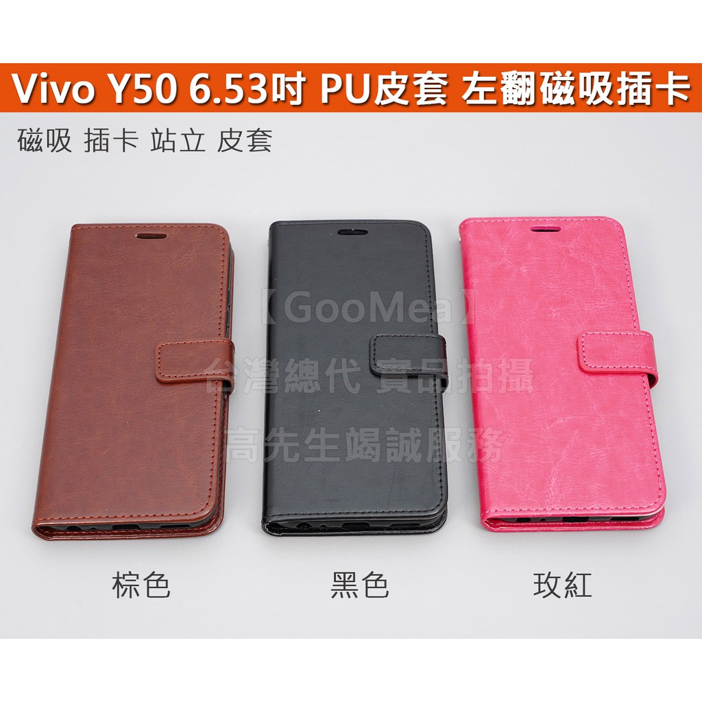 GMO特價出清多件Vivo Y50 6.53吋左翻磁吸PU皮套插卡站立吊飾孔手機套殼保護套殼防摔套殼好手感