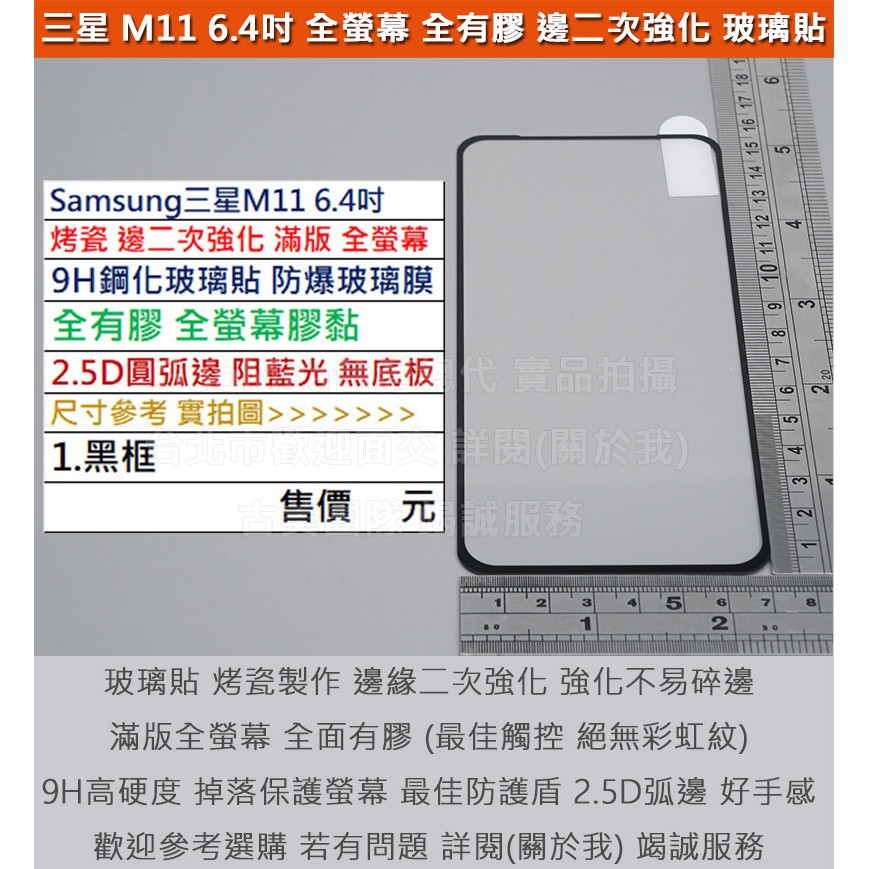 GMO特價出清多件Samsung三星M11 6.4吋滿版烤瓷邊二次強化無底板9H鋼化玻璃貼防爆玻璃膜全膠2.5D圓弧邊