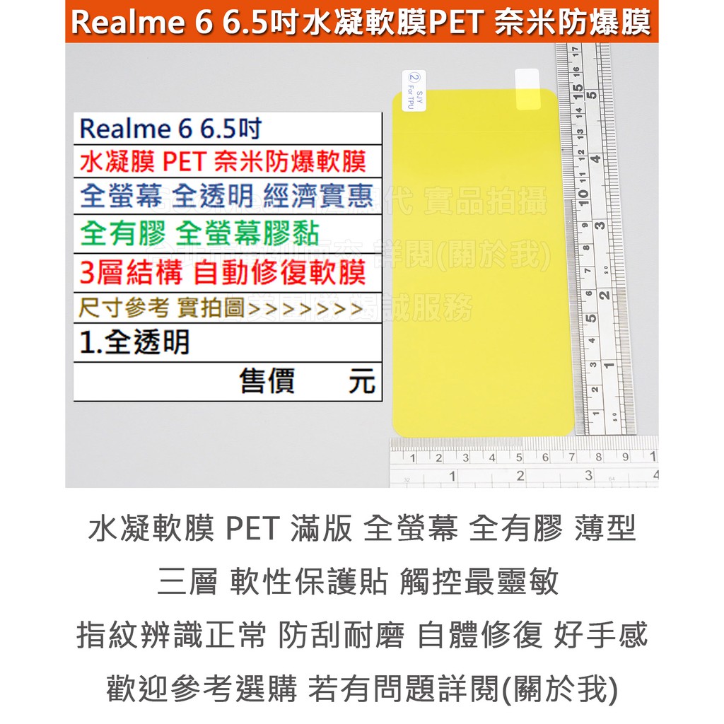 GMO特價出清多件Realme 6 6.5吋水凝膜PET奈米防爆軟膜全螢幕全透明經濟實惠全有膠3層結構自動修復軟膜