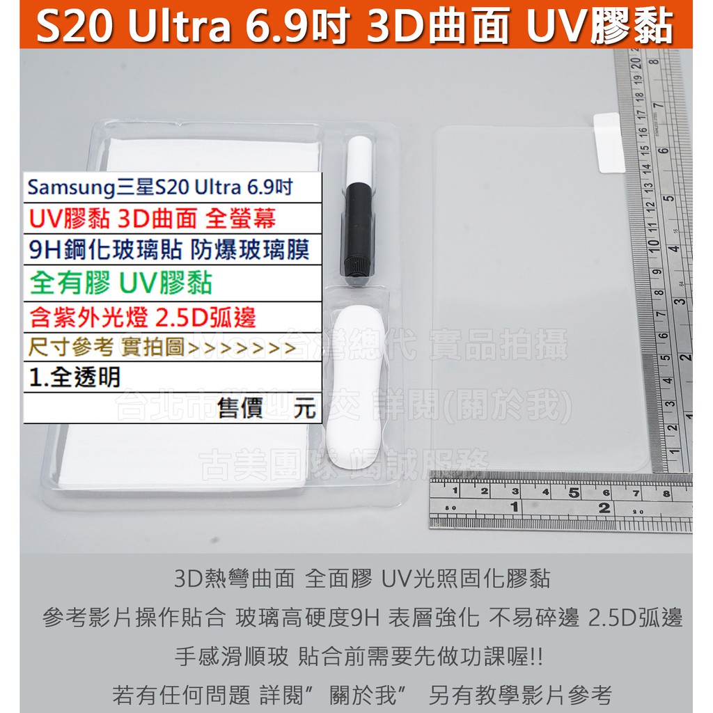 GMO特價出清多件三星S20 Ultra 6.9吋UV膠黏3D曲面全螢幕9H鋼化玻璃貼防爆玻璃膜全膠含紫外光燈圓弧邊