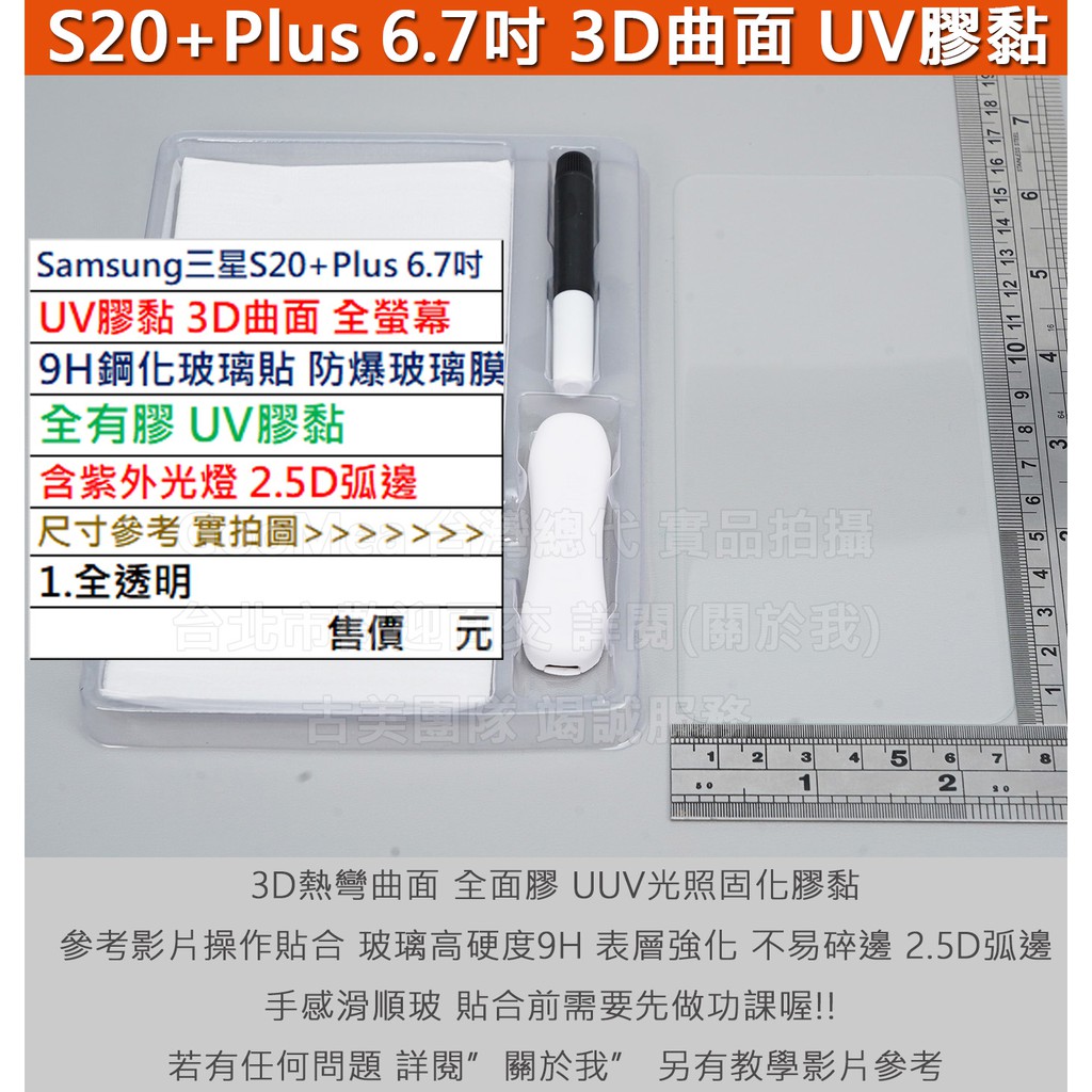 GMO特價出清多件三星S20+Plus 6.7吋UV膠黏3D曲面9H鋼化玻璃貼防爆玻璃膜全有膠含紫外光燈圓弧邊全透明