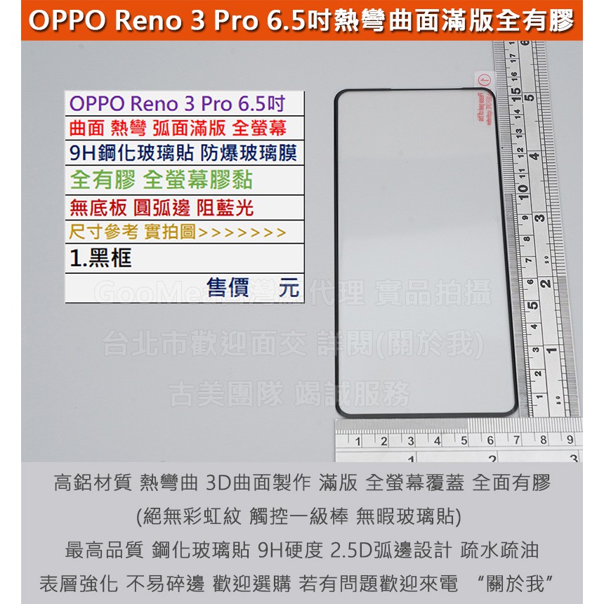 GMO特價出清多件OPPO Reno 3 Pro 6.5吋熱彎曲面 弧面滿版 全螢幕 全有膠9H鋼化玻璃貼 防爆玻璃膜