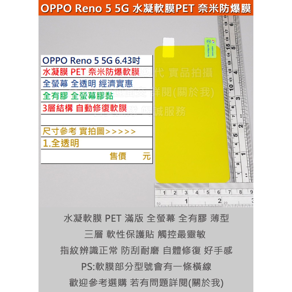GMO特價出清多件OPPO Reno 5 5G 6.43吋水凝膜PET奈米防爆軟膜全螢幕經濟實惠全膠3層結構自動修復