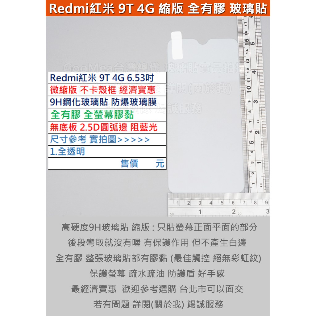 GMO特價出清多件小米Redmi紅米9T 4G 6.53吋微縮版不卡殼框平面9H鋼化玻璃貼防爆玻璃膜全有膠2.5D弧邊