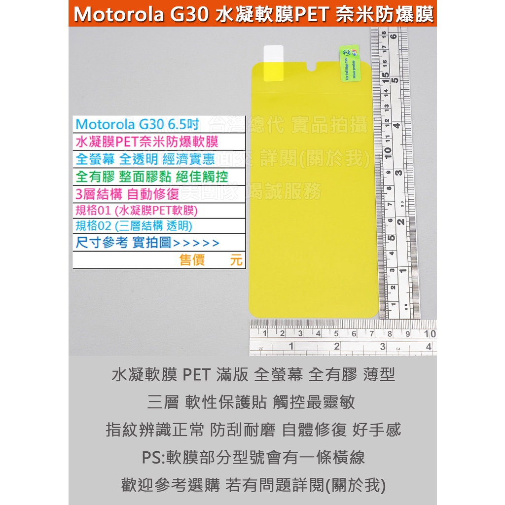 GMO特價出清多件Motorola G30 6.5吋水凝膜PET奈米防爆軟膜全螢幕全透明經濟實惠全膠3層結構自動修復
