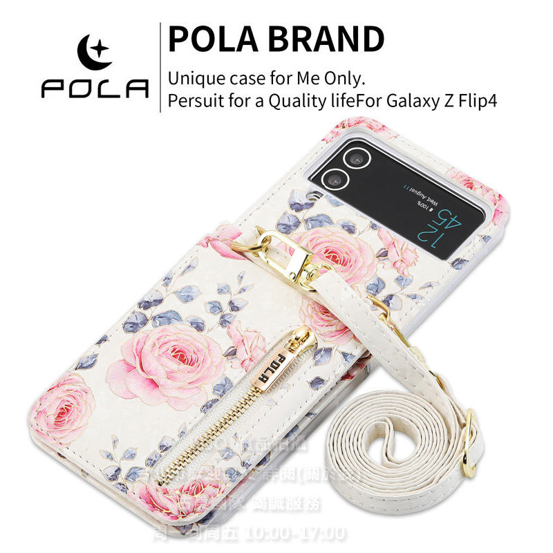 KGO特價 Samsung 三星 Z Flip 4 3代F7110 F7210折疊機花朵 黑 拉鍊錢包插卡皮套保護套殼