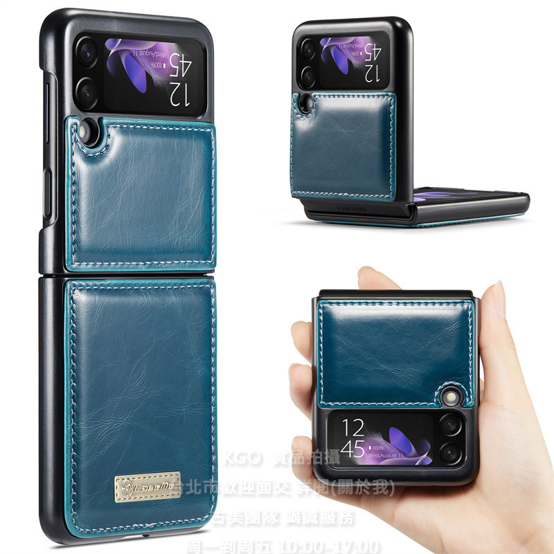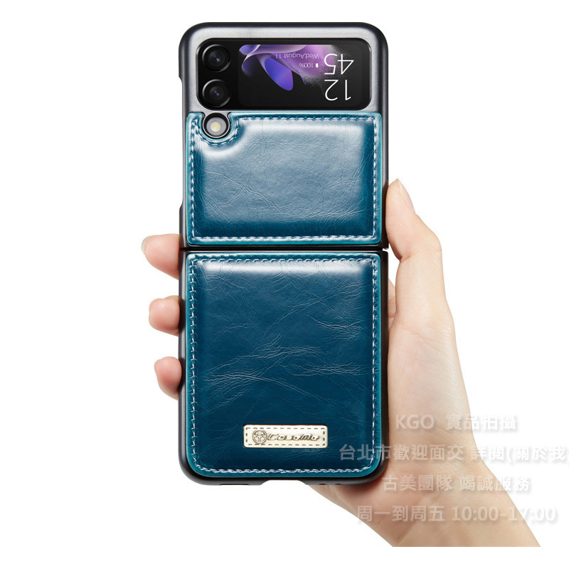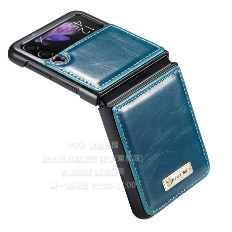 KGO現貨特價Samsung三星Z Flip 3代F7110折疊機 藍綠 瘋馬紋皮套翻蓋保護套殼防摔套殼