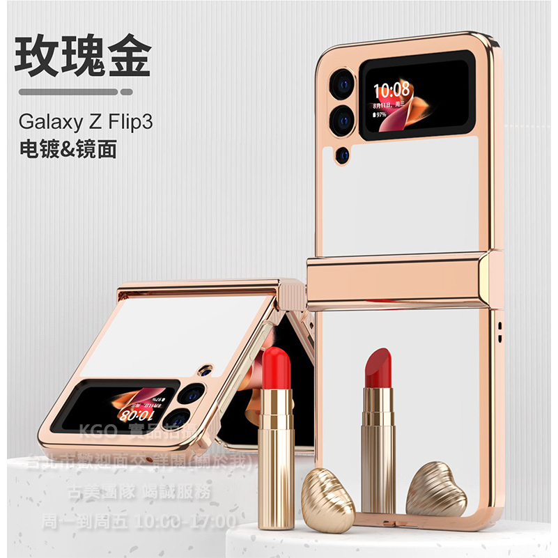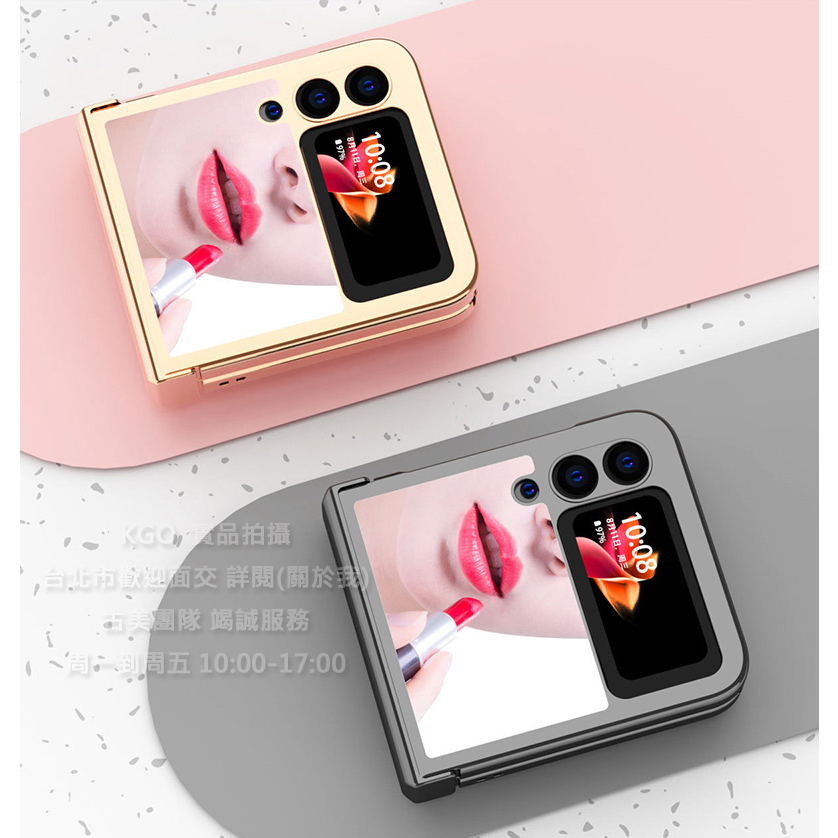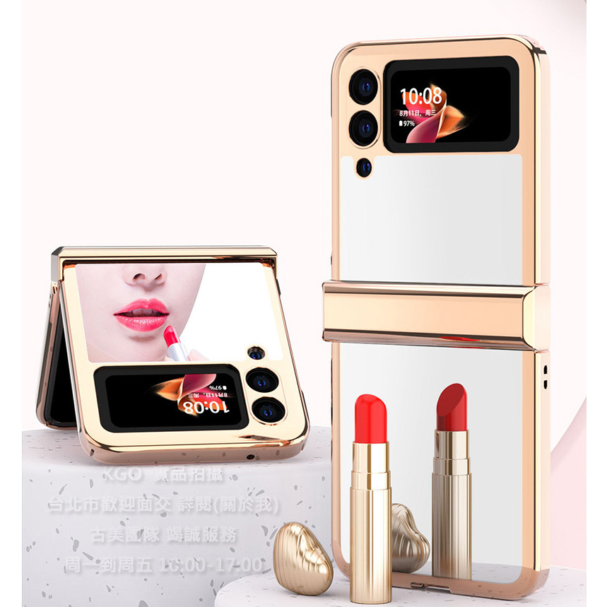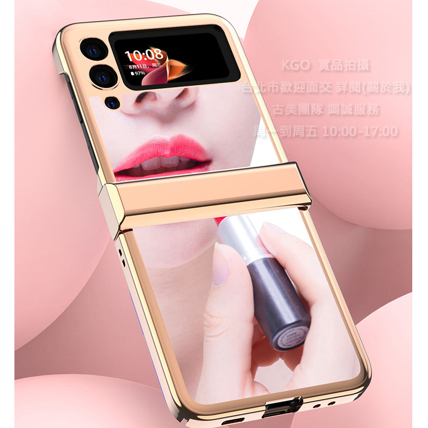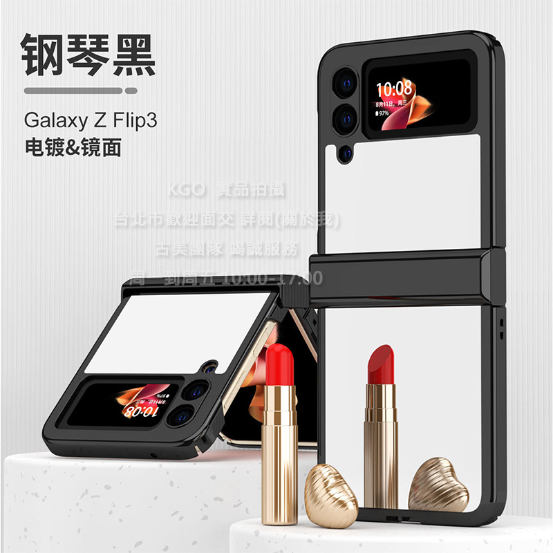 KGO現貨特價Samsung三星Z Flip 3代F7110折疊機時尚 鋼琴黑 化妝鏡美妝款皮套保護套殼