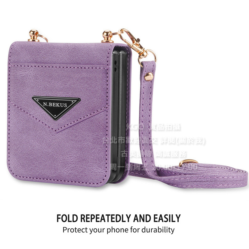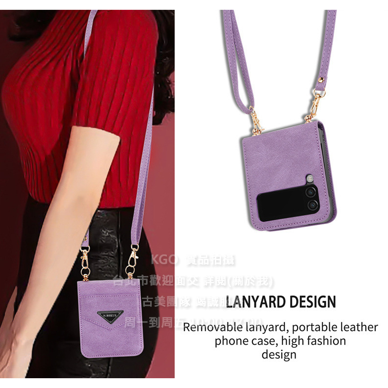 KGO現貨特價Samsung三星Z Flip 4 3代F7110 F7210折疊機時尚側背拉鍊插卡 紫色 皮套保護殼套