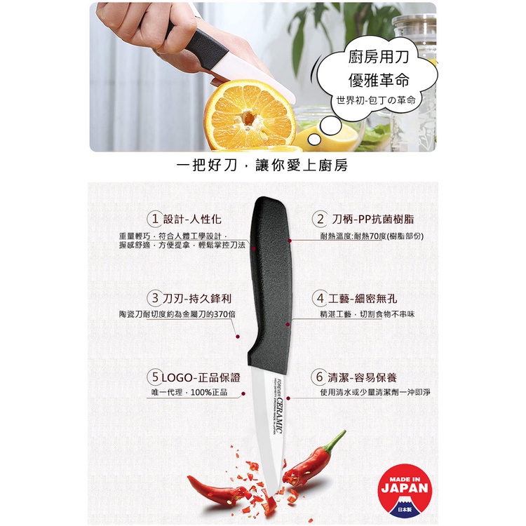 【FOREVER】日本製造鋒愛華陶瓷刀9CM(白刃黑柄)《好拾物》
