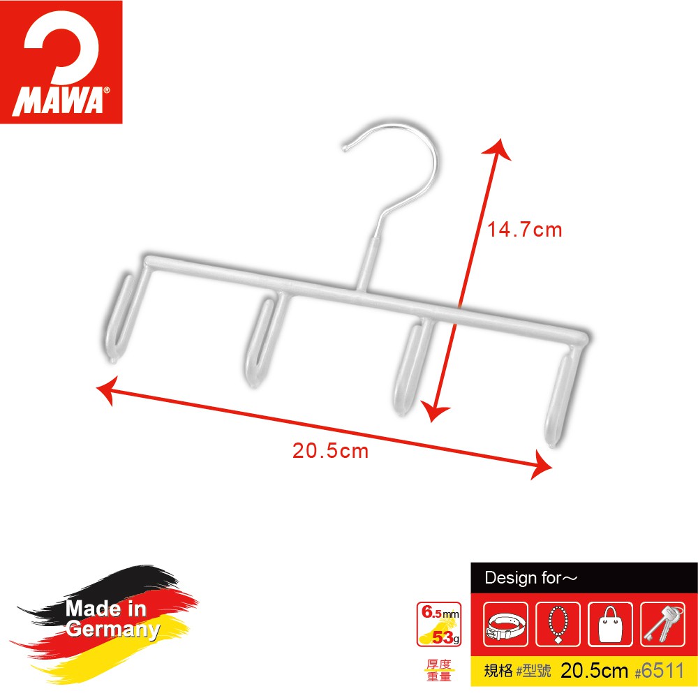 【德國MAWA】時尚簡約紳士皮帶架20.5cm白色(1入)#6511w 止滑衣架 無毒 防滑 德國原裝 無痕衣架