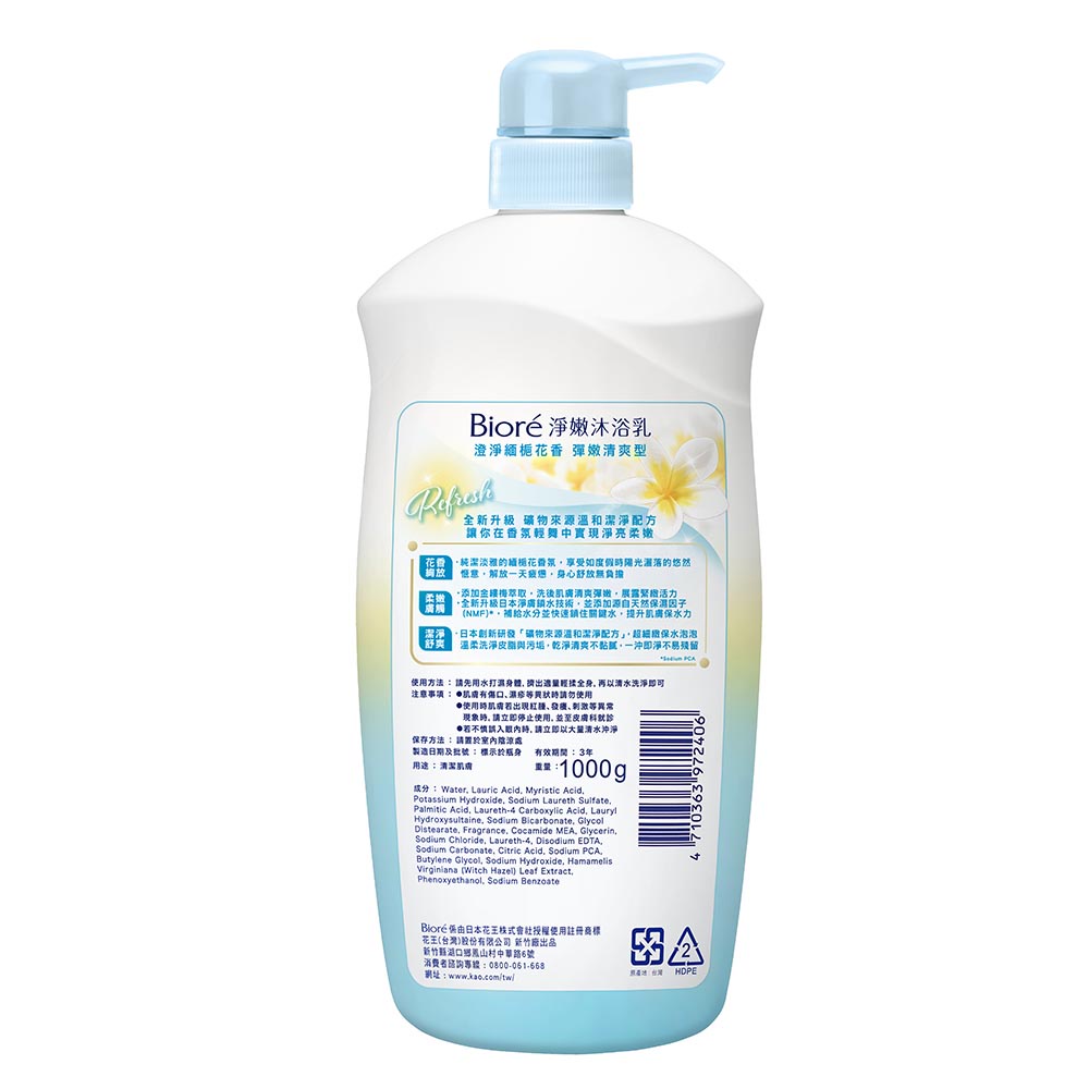 Biore 淨嫩沐浴乳(澄淨緬梔花香-彈嫩清爽型) 1000g【家樂福】