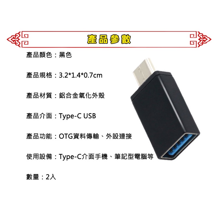 台灣霓虹 Type-C公轉USB3.0母OTG轉接頭2入組 傳輸 充電