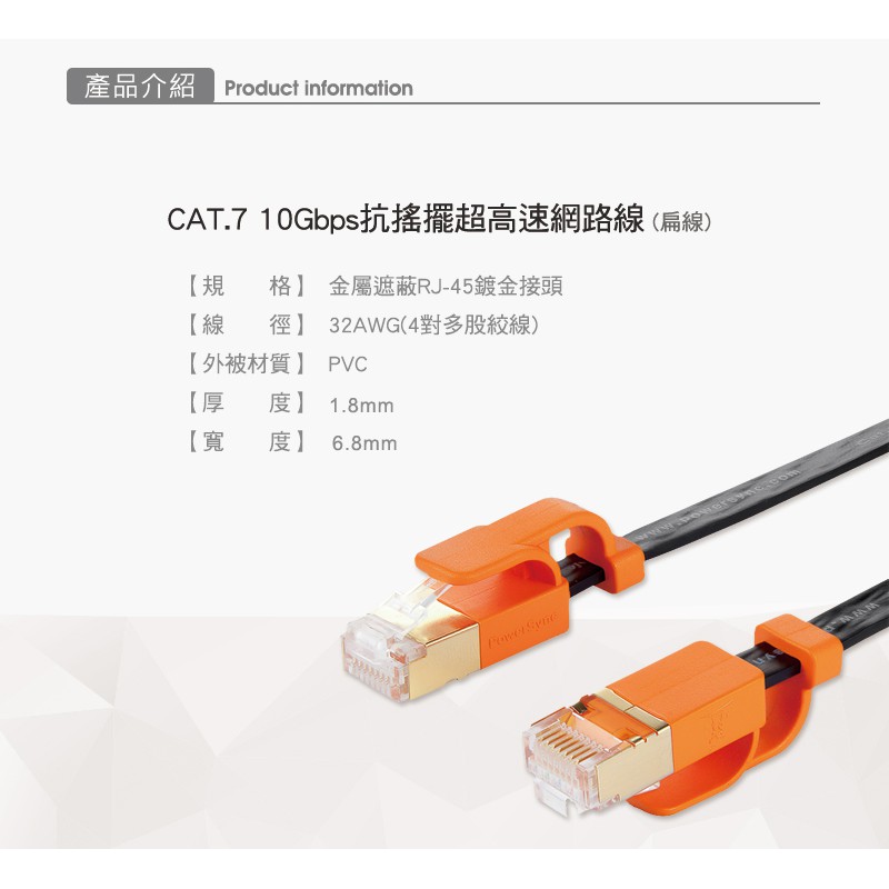 💎網路線💎群加Powersync CAT7 10Gbps超高速【抗搖擺耐彎折】網路線扁10米以上CLN7VAF0