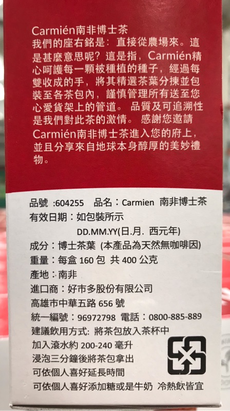 Costco 好市多代購 CARMIEN 南非國寶茶 南非博士茶 每盒160包 #604255