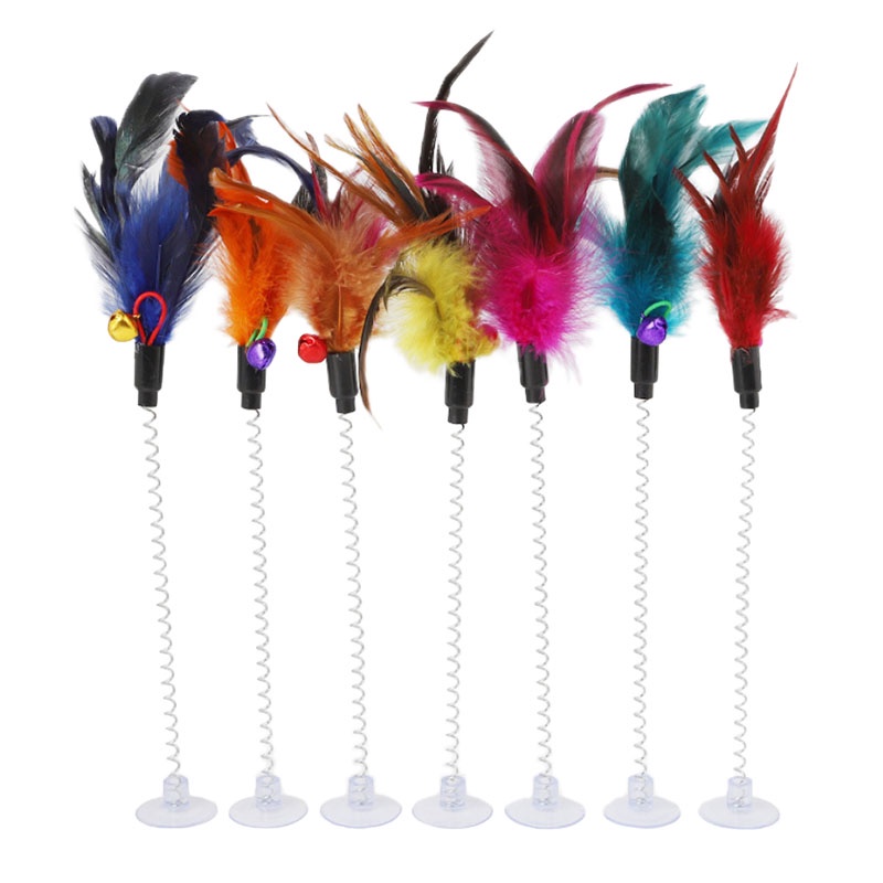 繽紛羽毛彈簧逗貓吸盤 逗貓吸盤 貓玩具 羽毛逗貓棒 鈴鐺逗貓棒 羽毛逗貓吸盤 逗貓棒 貓玩耍