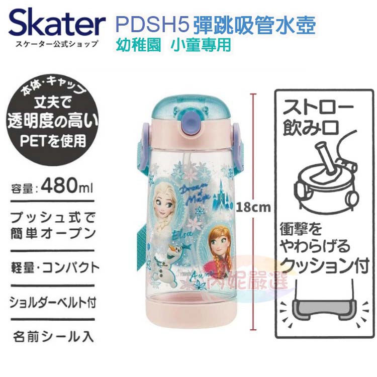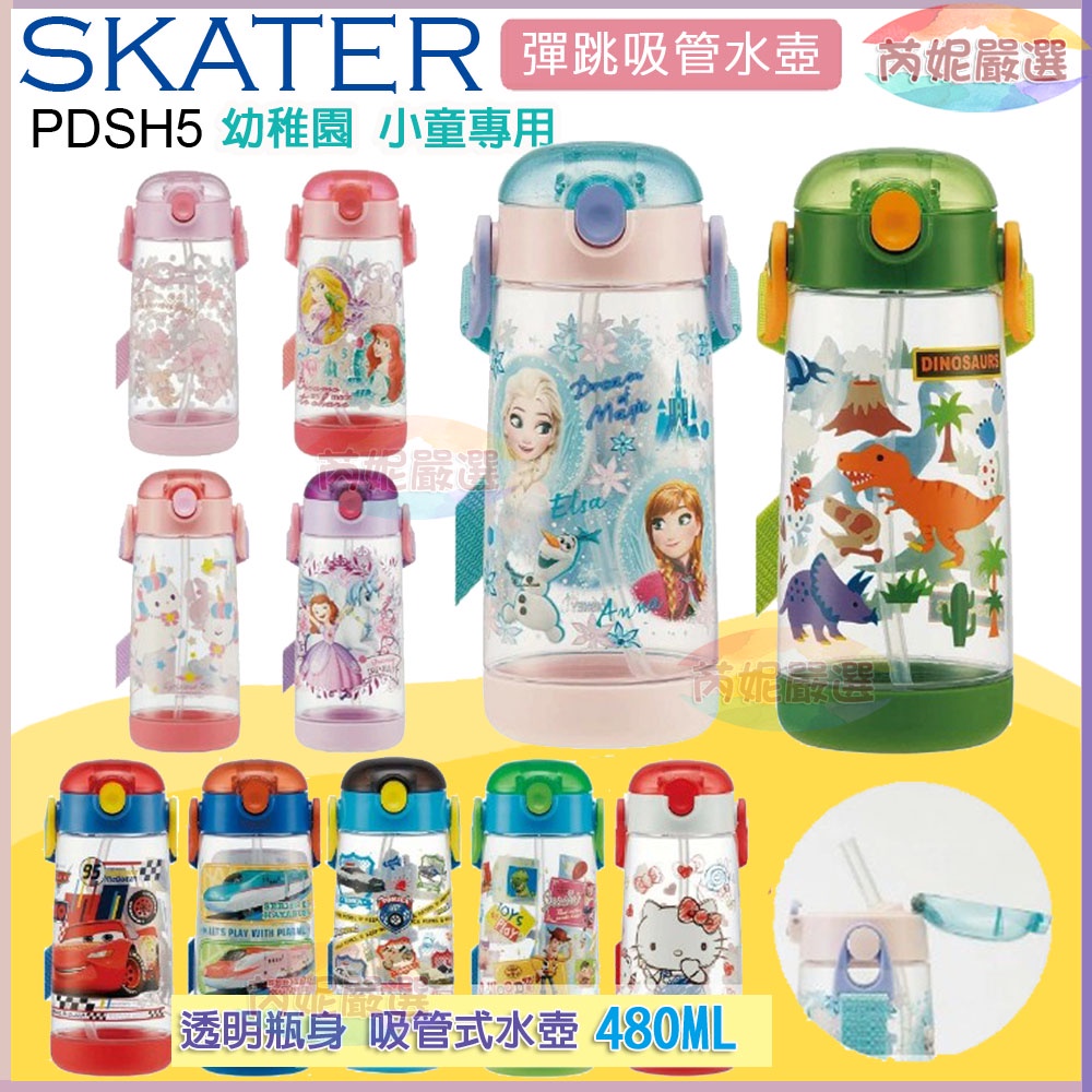 (開發票)芮妮嚴選 Skater日本原裝 PDSH5 兒童彈跳式吸管冷水壺/透明塑膠水壺480ml 新幹線 恐龍